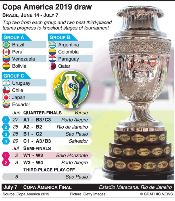 Brazília ad otthont ennek a rangos eseménynek, ahol 12 csapat – 10 CONMEBOL tagország mellett a 2019-es Ázsia Kupa győztese és ezüstérmese, Katar és Japán – kapott meghívót. Neymar a hazai csapatban nem lesz ott, de a abban biztosak lehetünk, hogy nélküle is arra törekszik a Selecao, hogy letaszítsák a trónról Chilét, aki 2015-ben és 2016-ban is nyert.